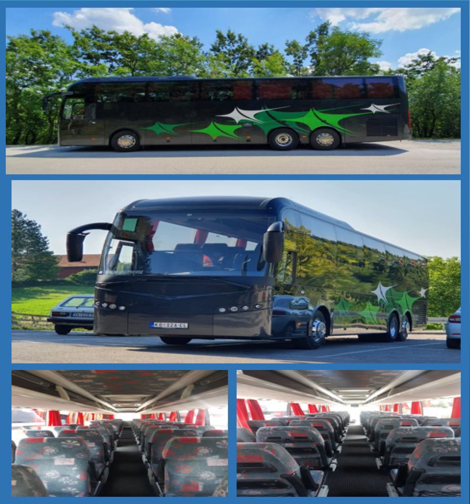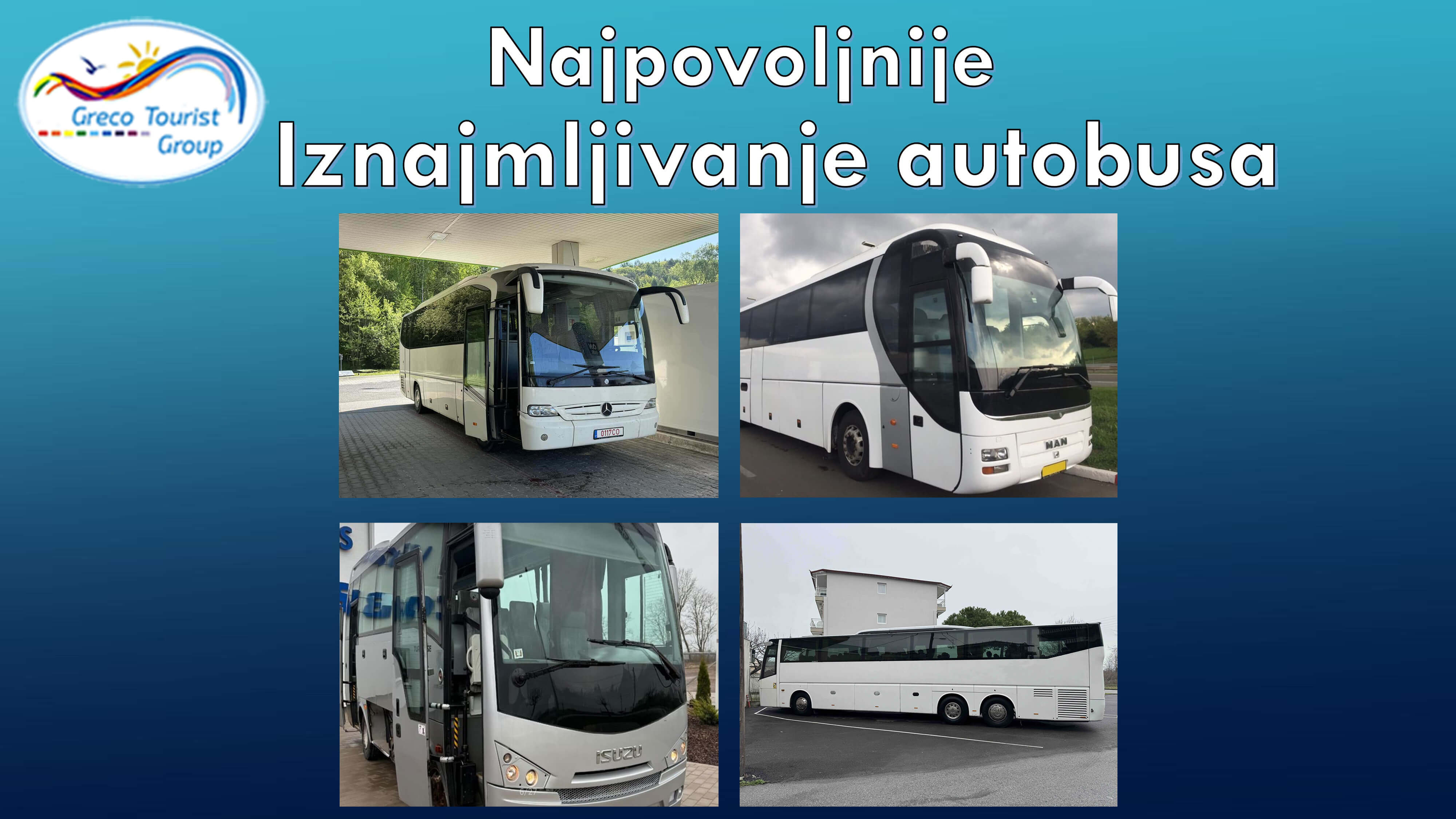 Dugogodišnje iskustvo i veliki broj zadovoljnih klijenta garantuju pouzdanost, sigurnost i kvalitet usluge prilikom iznajmljivanja autobusa. Klijentima su na raspolaganju luksuzno opremljeni autobusi turisticke klase renomiranih proizvodaca: Neoplan, Setra, Bova, Volvo.